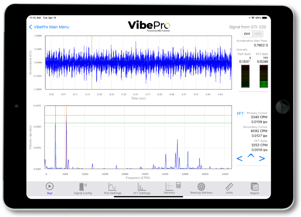 For a better understanding, let’s take a look at a typical rotating machine. Each bearing, gear, and other rotating element produces a unique vibration signature. A narrow-range system may not catch the subtle changes indicating approaching failure. In contrast, a system with a more extensive frequency range is able to detect these warning signs well in advance so maintenance teams can take early action to prevent escalation. VibePro, for instance, measures frequencies of up to 20,000 Hz while many competitive systems have a maximum range of 10,000 Hz and many systems offer much lower frequency ranges. Some as low as 500-1,000 Hz!